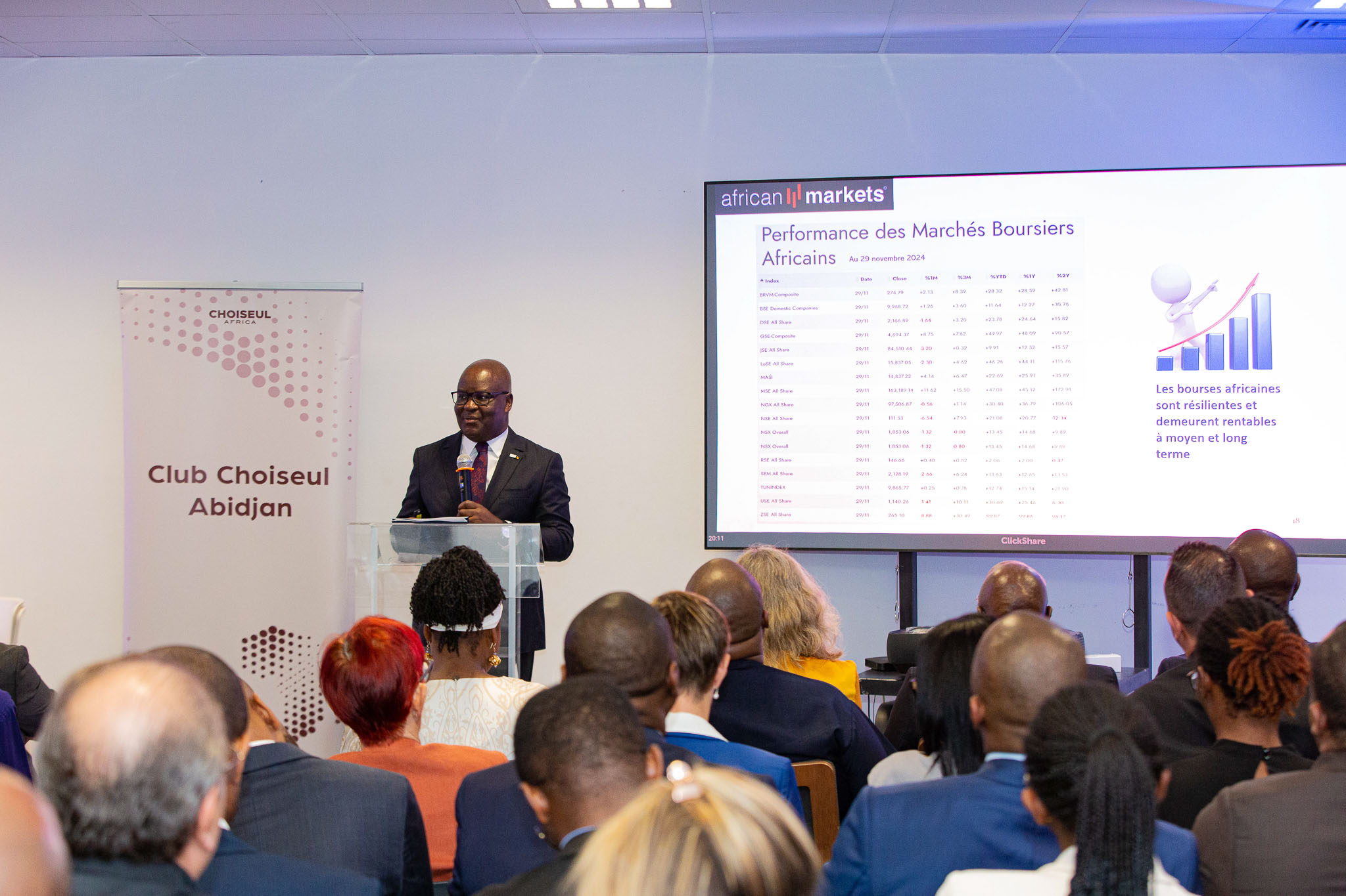 Organisé par Choiseul Africa, le Club Choiseul Abidjan est une série de rencontres prenant la forme de dîners ou de réunions de travail, réunissant chaque fois des hauts dirigeants économiques et politiques ivoiriens et issus de la sous-région, autour d’un ou plusieurs acteurs phares du secteur public ou privé prenant la parole sur des thématiques porteuses de croissance.